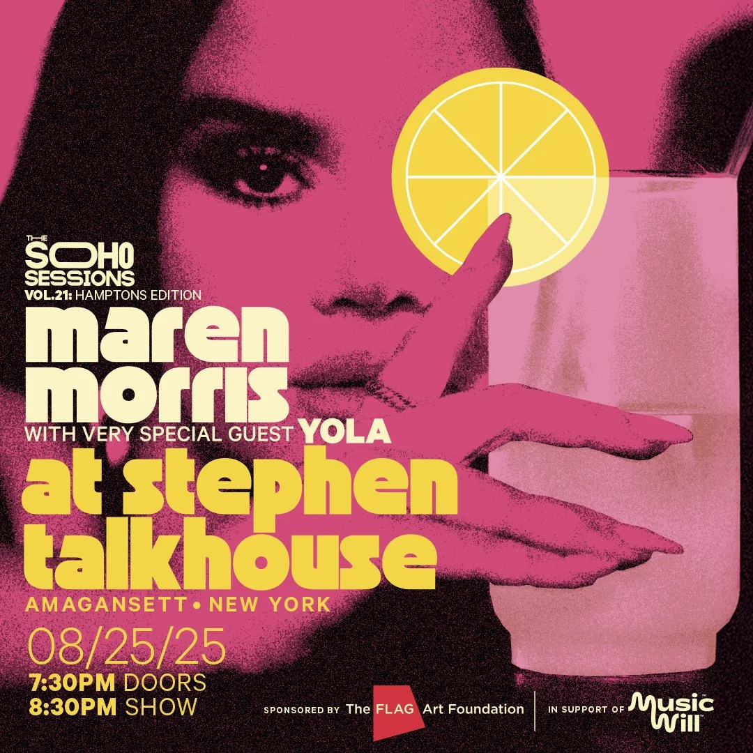 The FLAG Art Foundation is proud to sponsor a special edition of The Soho Sessions with Grammy-winning American singer-songwriter Maren Morris & special guest English singer-songwriter Yola. This event supports the nonprofit organization Music Will, which equips educators to teach, students to learn, and lives to be transformed through music education, regardless of their background.