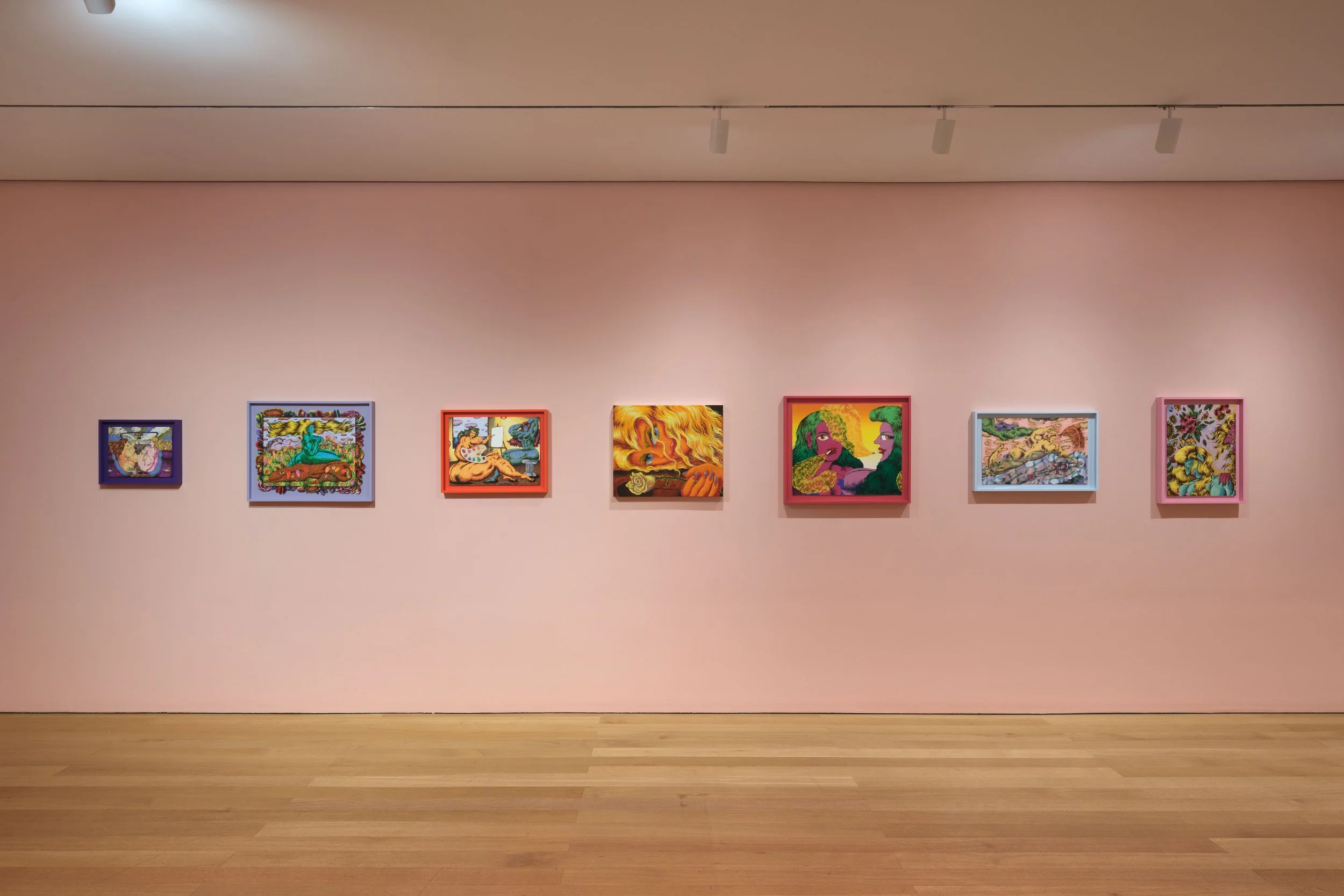Eternal Flame reveals the diversity of Benaroya’s practice by highlighting the continued evolution of her style alongside new thematic forms. In each series and across the different media she works in, Benaroya consistently renders her subjects and the spaces they exist in by using her distinctively bold, graphic and color-saturated approach, one that borrows as much from the world of illustration as it does from painting. Regularly invoking the style of comic books—with their binary emphasis on heroic characters and evil antagonists—Benaroya portrays women that are empowered and without shame.